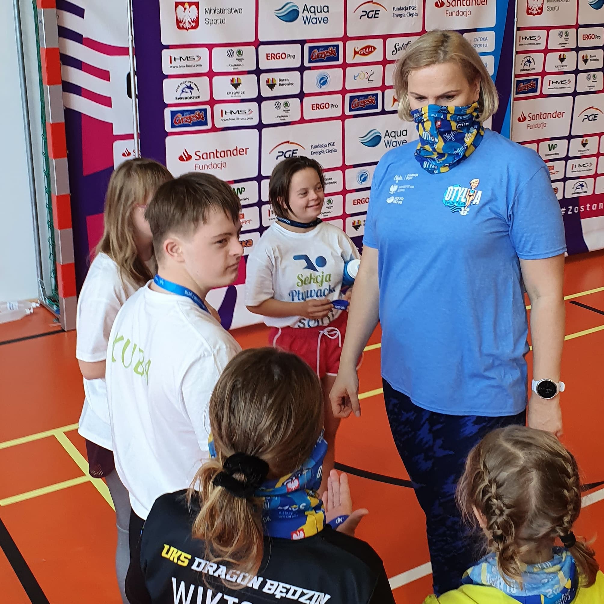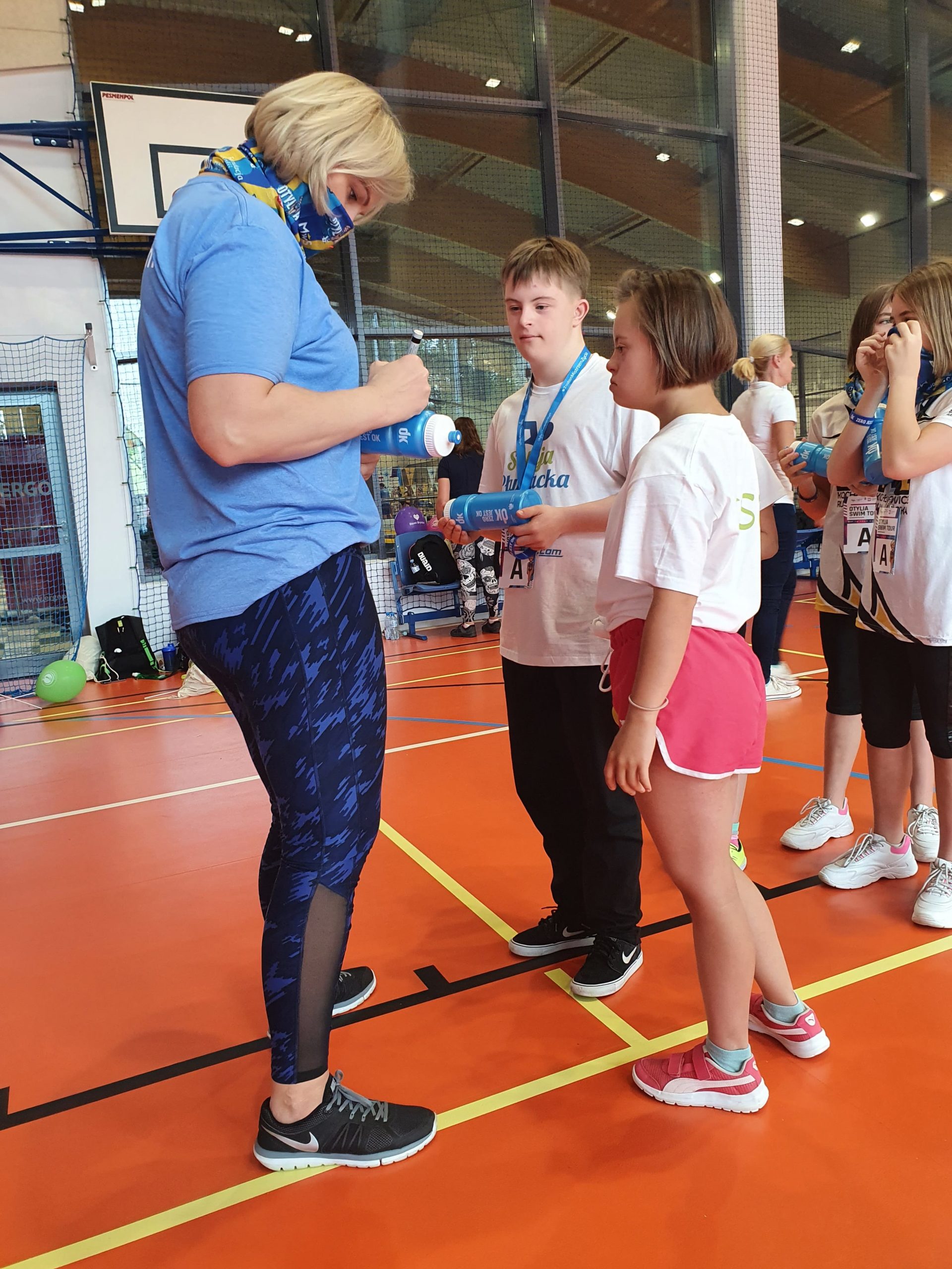 Katowicka edycja Otylia Swim Tour była wyjątkowa, ponieważ po raz pierwszy w historii razem z pełnosprawnymi pływakami w warsztatach uczestniczyła trójka sportowców z zespołem Downa. Ela, Zosia i Kuba, którzy szykują się właśnie do mistrzostw Polski w pływaniu Sprawni-Razem, mieli niepowtarzalną okazję odebrać praktyczne wskazówki od najwyższej klasy specjalistów wszystkich stylów pływackich. Nasi zawodnicy wykorzystali maksymalnie czas poświęcony im przez trenerów i samą mistrzynię, chłonąc z uwagą każdą radę dotyczącą kwestii technicznych w każdym z czterech stylów, a także skoków startowych i nawrotów, jak również z zakresu treningów na sucho, właściwej diety i stylu życia osób dążących do osiągania najwyższych wyników sportowych. Nieocenione okazały się również wykłady pani Otylii, w których opowiadała o doświadczeniach z własnej drogi do mistrzostwa.