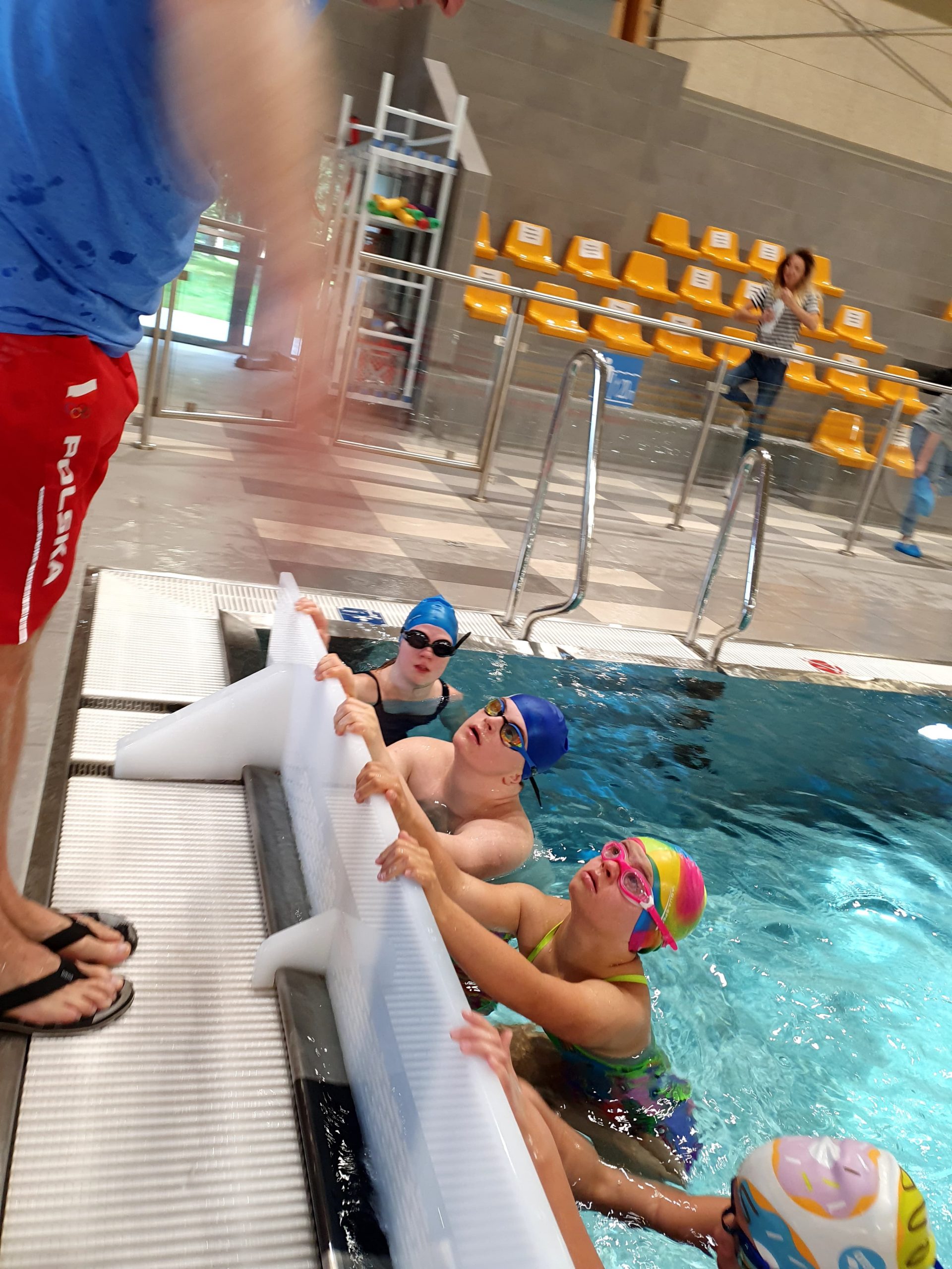 Życzliwość w przekazywaniu zadań pływackich, uważność w korygowaniu błędów oraz entuzjazm po prawidłowym wykonaniu ćwiczenia sprawiły, że Ela, Zosia i Kuba z pełnym zaangażowaniem uczestniczyli w każdej części warsztatów, chłonąc wiedzę i sportową atmosferę, jaka panowała na Basenie Burowiec w Katowicach. Do nas zaś (obserwatorów) wielokrotnie docierały bardzo pozytywne komentarze na temat wysokiego poziomu wyszkolenia naszych zawodników, ich zaangażowania i chęci do współpracy. To mały, ale ważny krok na drodze zmiany postrzegania osób z zespołem Downa przez środowisko trenerów współpracujących z pełnosprawnymi sportowcami. Wierzymy, że wkrótce ta droga doprowadzi nas do upowszechnienia praktyki włączania zawodników z niepełnosprawnością intelektualną do treningów i wszelkich wydarzeń sportowych, które dotychczas zarezerwowane były dla osób pełnosprawnych.